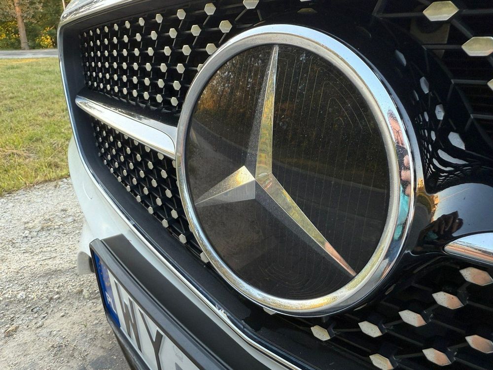 Pełne wyposażenie wnętrza: fotele przednie wentylowane z elektryczną regulacją i pamięcią ustawień, podgrzewane lusterka boczne, system multimedialny COMAND z Apple CarPlay i Android Auto, ambientowe oświetlenie wnętrza, klimatyzacja automatyczna
